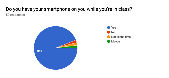Since students have their smartphones on them while they are in class, we can see that our application will need to be easily accessible from a mobile device.