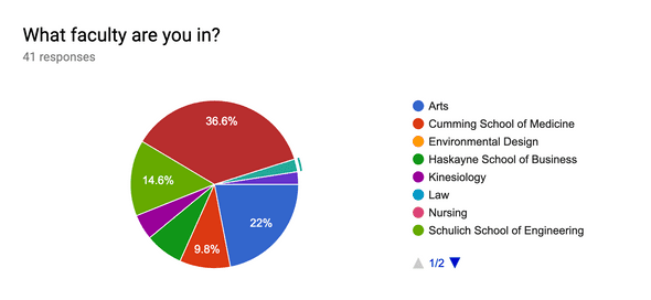 We reached out to University of Calgary students to see what can can they say regarding attendance. Our demographic includes students from different faculties however the most students indicated they are from Science. The majority of surveyed students are first year students.